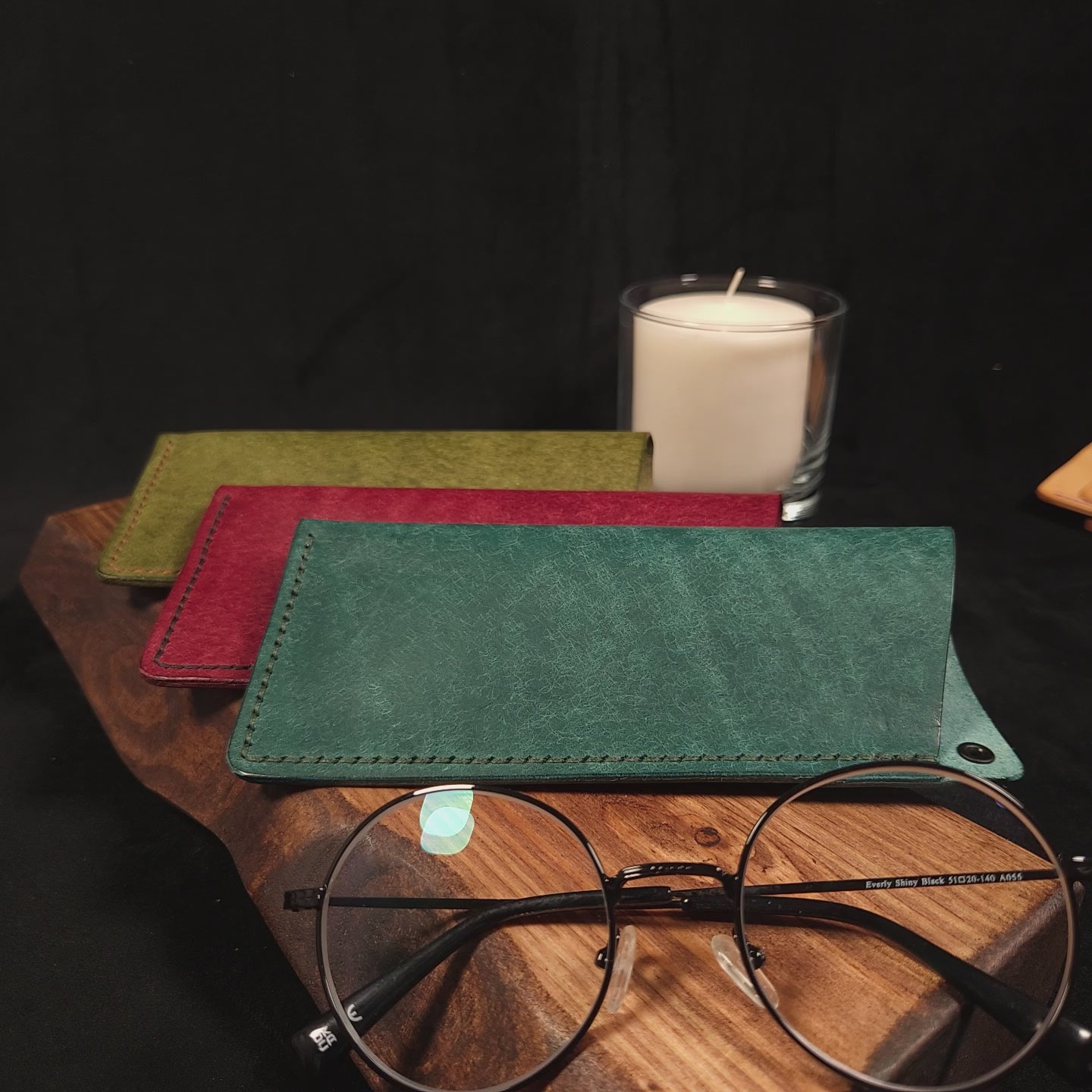 Hand-crafted from Pueblo leather, sourced from the prestigious Italian tannery Badalassi Carlo. This glasses pouch begins with a distinctive matte, slightly coarse texture. With every use, the leather naturally burnishes and darkens, developing a rich, smooth patina that reflects your story over time.